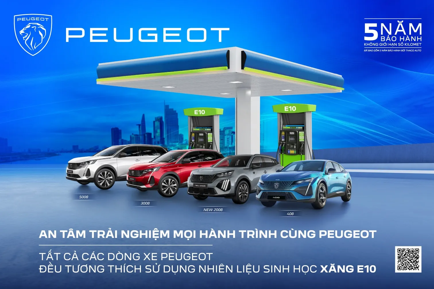 Toàn bộ các mẫu xe Peugeot đang được phân phối chính hãng tại Việt Nam đều tương thích với xăng E10, bao gồm: Peugeot 2008, 3008, 5008, 408.